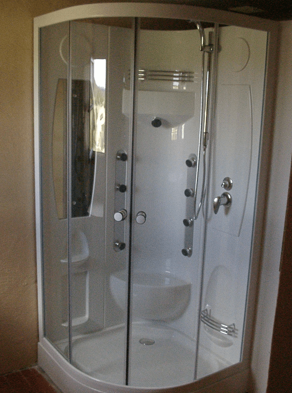 • pose du bac à douche en Corian de chez Porcelanosa 1,60 m x 0,90 m,